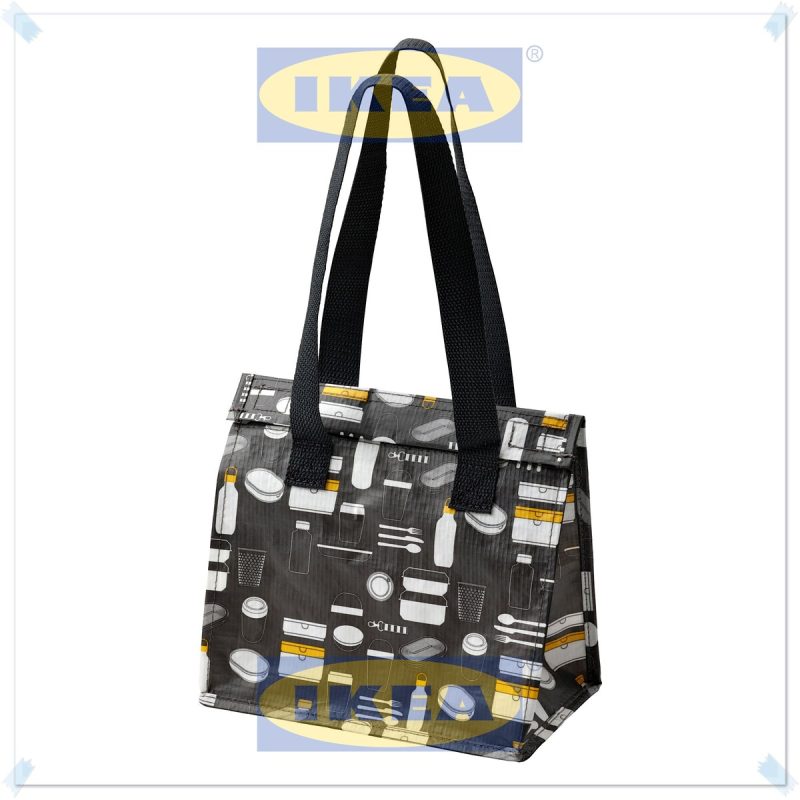 Fladdrig Gri Desenli Yemek Taşıma Çantası, Beslenme Çantası, Yemek Çantası, 25x16x27 cm