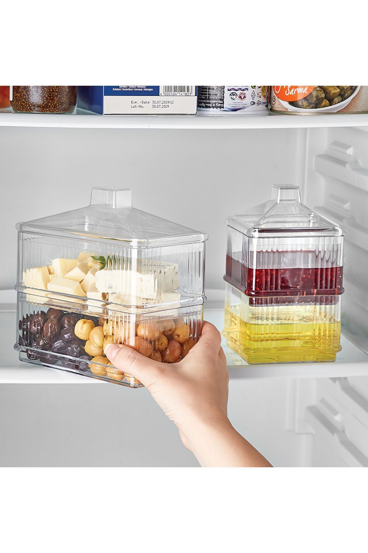 2Katlı Kare Drajelik Sunum Seti 2Katlı Kare Şekerlik Kahvaltılık Saklama Kabı Lokumluk