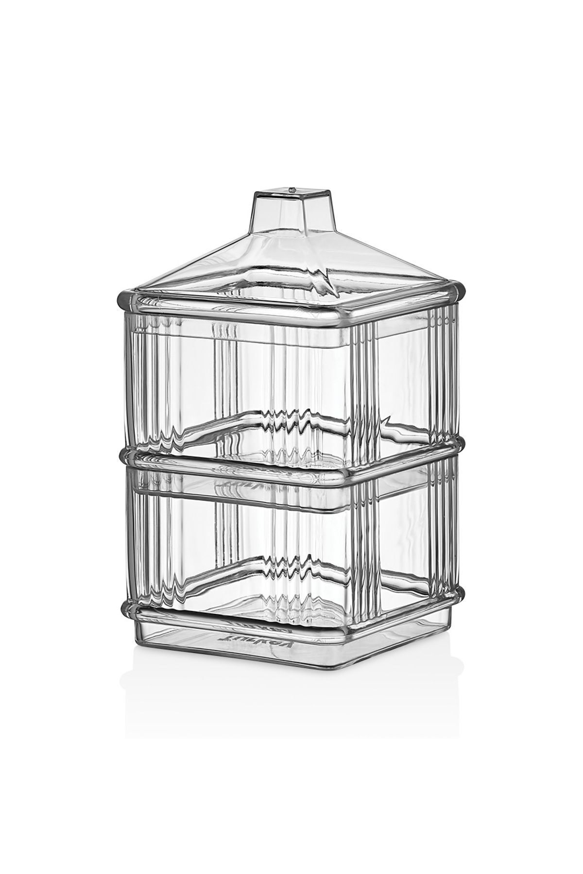 Akrilik malzeme kullanılarak üretilmiş olup, dayanıklılığı ve uzun ömürlü kullanımı ile öne çıkar; Kare tasarımı sayesinde modern ve şık bir görünüm sunar, mutfak dekorasyonunuza estetik bir dokunuş katar; İki katlı yapısı ile hem şekerlik hem de kahvaltılık saklama kabı olarak çift fonksiyonlu bir kullanım sağlar; Lokumluk olarak da kullanılabilme özelliği ile tatlı sunumlarınızda şıklığı ve fonksiyonelliği bir arada sunar;