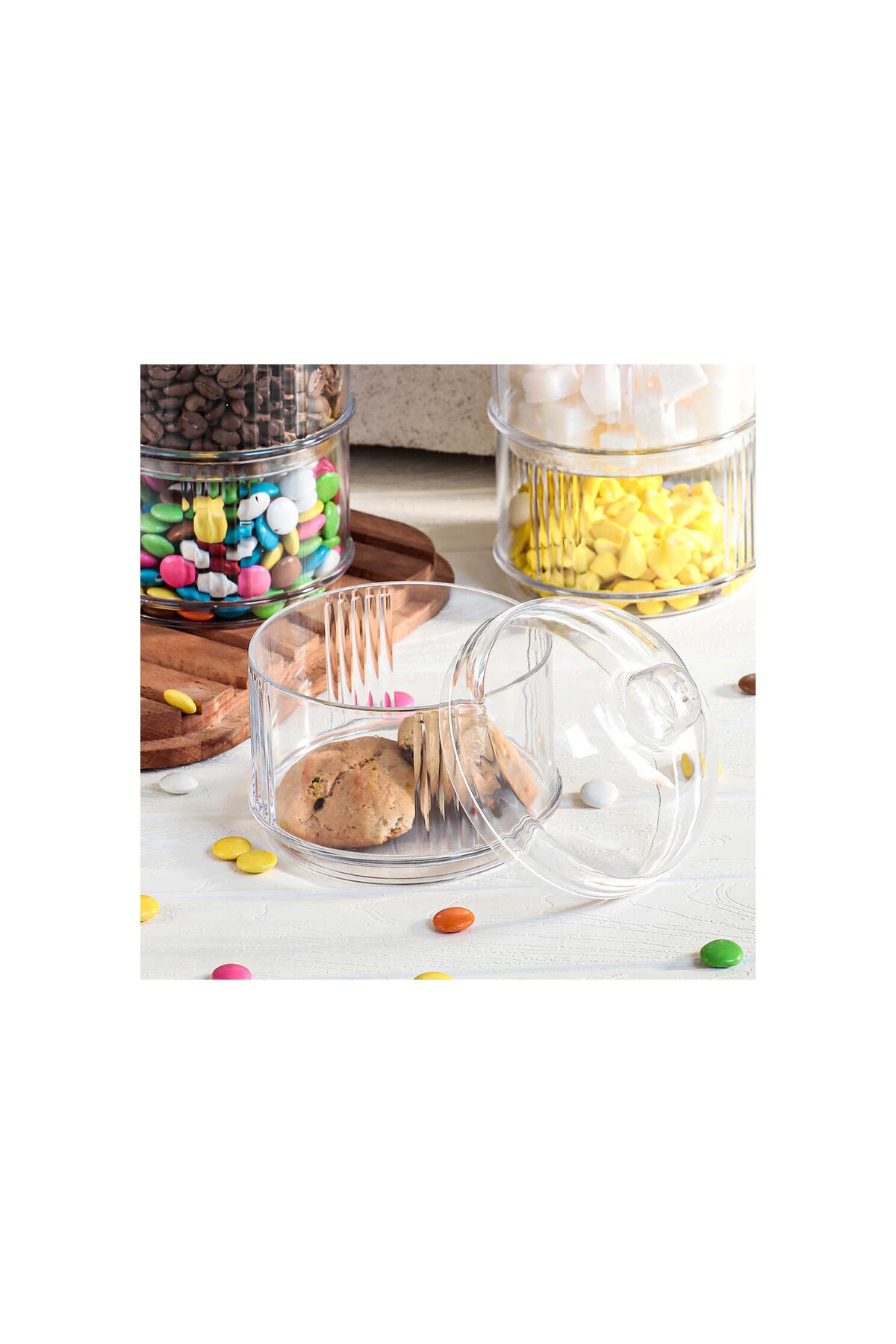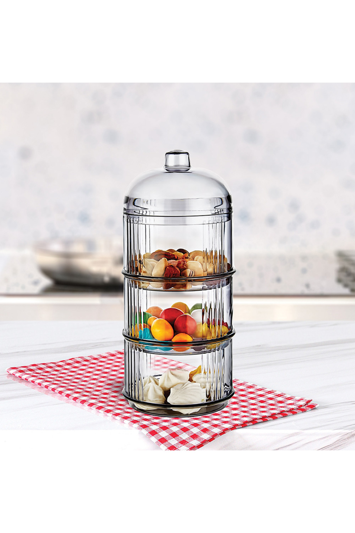 * Sert Plastik Akrilikten İmal Edilmiştir. ; * Gıda İle Teması Uygundur. ; * İster Şekerlik İster Sunum Malzemesi isterse Saklama Kabı Olarak Kullanın. ; * İster Tek Tek İstersenizde Üst Üstte Kullanabilirsiniz. ; * Şık Tasarımı İle Görsel Olarak Herkes Tarafından Kıskanılacak Bir Ürün… ; ÜRÜN ÖZELLİKLERİ – Yükseklik : 24 cm ( Kapakla Birlikte ) – En – Boy : 10 x 10 cm – 3 Adet Hazne 1 Adet Kapaktan Oluşmaktadır.;