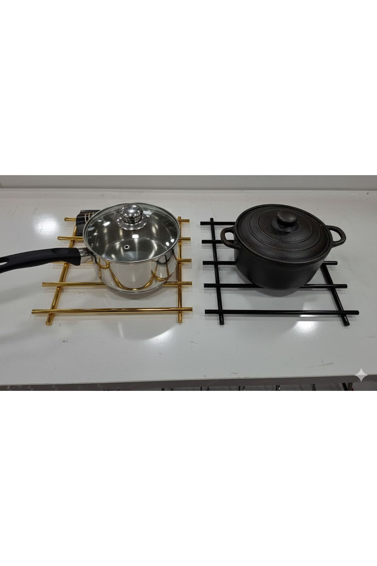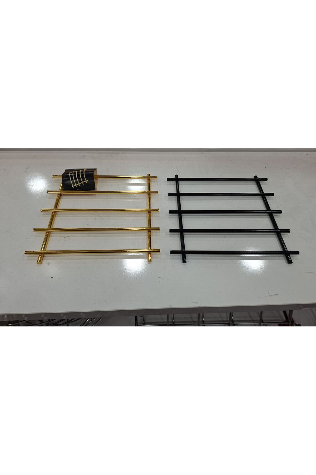 Lüks Dokunuş: Altın Renkli Paslanmaz Metal Nihale Mutfak tezgahlarınızı ve yemek masalarınızı korurken zarafetten ödün vermeyin! Altın renkli metal nihale, modern tasarımı ve fonksiyonelliği bir araya getirerek mutfağınızın en şık aksesuarlarından biri olmaya aday.; Yüksek ısıya dayanıklı yapısı sayesinde; tencere, tava, çaydanlık ve fırın tepsisi gibi sıcak mutfak gereçlerini yüzeylere zarar vermeden güvenle taşımanızı sağlar.; Kullanım Alanı: Hem günlük yemek hazırlığında hem de şık davet sofralarında sunum amaçlı kullanılabilir.; 20*20 ebatlarında olan nihale tezgah ve masa örtülerinizi korumak için ideal bir seçimdir.;