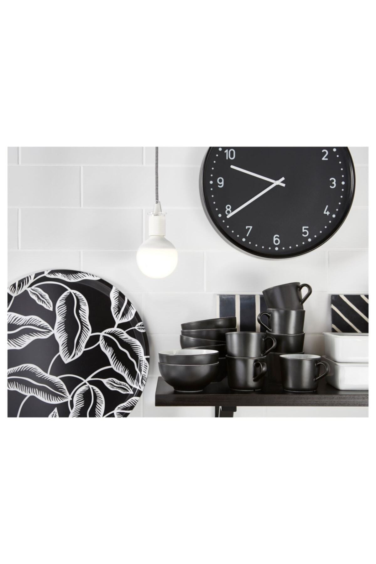 Bir kuvars saat olduğundan en doğru şekilde zamanı takip etmenizi sağlar; Saatin sessiz bir kuvars hareketine sahip olması nedeniyle rahatsız edici tıklama sesi gelmez; Bilmekte Fayda Var Piller ayrı satılır; IKEA, LADDA şarj edilebilir piller önerilir; Bu saat aynı zamanda 1xAA alkalin pillerle de çalışır; Atık ayırma işlemi gerekebilir; Daha fazla bilgi için lütfen yerel yetkililer ile iletişime geçiniz; Bu ürün CE işareti taşımaktadır; Bakım Talimatları Toz fırçası ile temizlenebilir; Kulplar, saat mekanizmasının arkasındaki kadran kullanarak ayarlanır; Kulpların doğrudan parmakla hareket ettirilmesi saat mekanizmasını tahrip edebilir; Malzeme ve Çevreye Duyarlılık Malzeme Saat çerçevesi:Çelik, Epoksi/polyester tozu kaplama Arka kaplama:Polyesterin plastik Saat yüzü:Polipropilen plastik Ön koruma:Cam Göstergeler:Alüminyum;