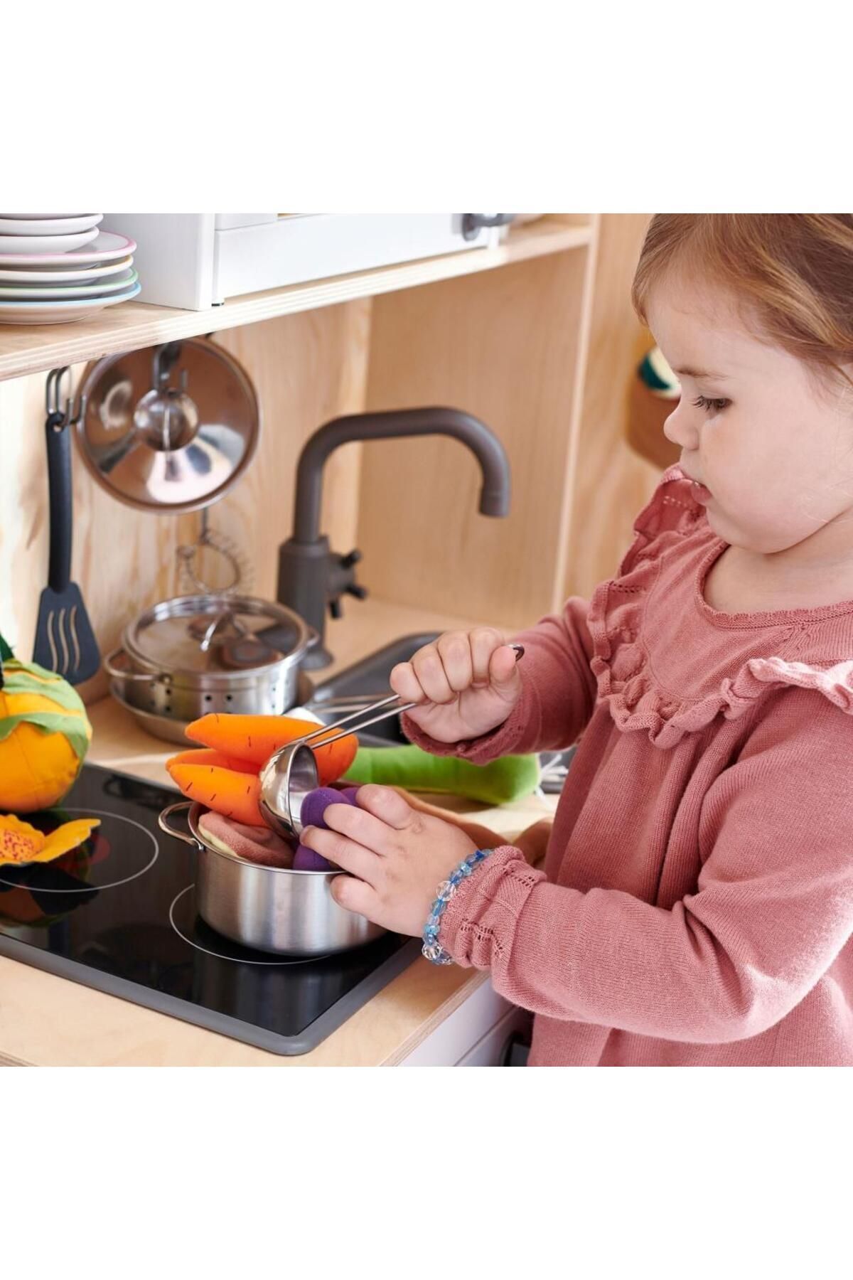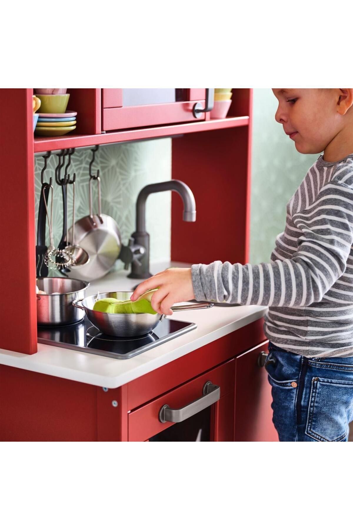 DUKTIG Oyuncak Tencere Seti Minyatür oyuncak tencere seti. ; Dayanıklı paslanmaz çelikten imal edilmiştir. ; Çocukların sosyal yeteneklerini taklit yöntemi ile geliştirirek kendi rollerini kazanmasına yardımcı olur. ; Bilmekte Fayda Var 3 yaş üzeri için tavsiye edilmiştir. ; Bu bir oyuncaktır ve yemek pişirmek için uygun değildir. ; Bu ürün CE işareti taşımaktadır. ; DUKTIG serisinde küçük bir şefin mutfakta başarılı olması için ihtiyaç duyduğu her şey var. ; Bakım Talimatları Sadece elde yıkanır. ; Mikrodalga fırına konulamaz. ; Fırına konulmaz. ; Malzeme Paslanmaz çelik;
