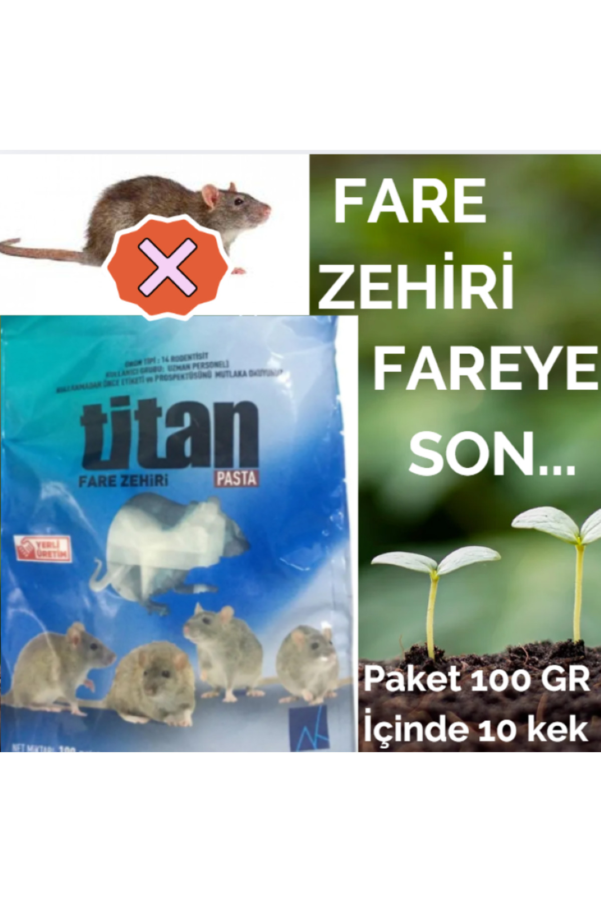 – 1 PAKET GÖNDERİLİR İÇİNDE 1O KEK VAR.; Yüksek kaliteli malzemelerden üretilmiş, %100 yerli üretim fare ilacıdır.; – 100 gram ağırlığında olan bu paket, evinizdeki farelerle mücadele etmek için idealdir.; – Her bir pakette bulunan 10 adet kek formundaki ilaç, kolay kullanım sağlar ve etkili sonuçlar sunar.; – Menşei Türkiye olan bu ürün, yerel kaynaklardan elde edilen hammaddelerle üretilmiştir.;