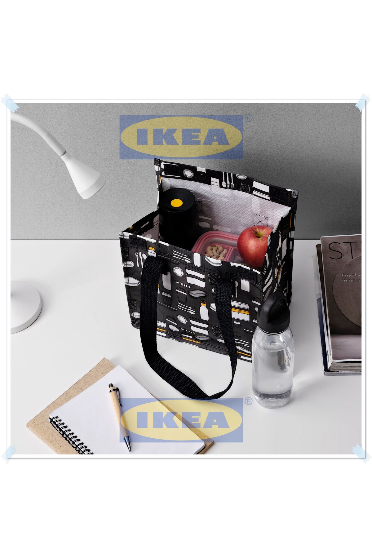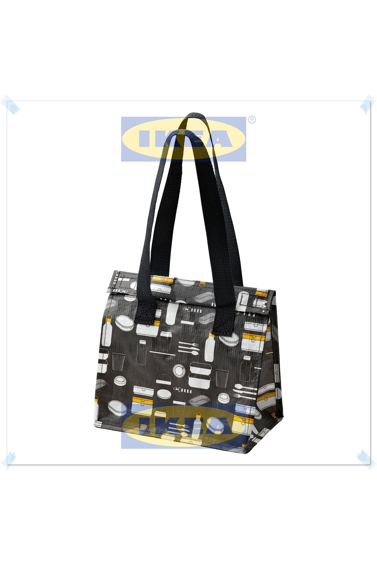 Fladdrig Gri Desenli Yemek Taşıma Çantası, Beslenme Çantası, Yemek Çantası, 25x16x27 cm