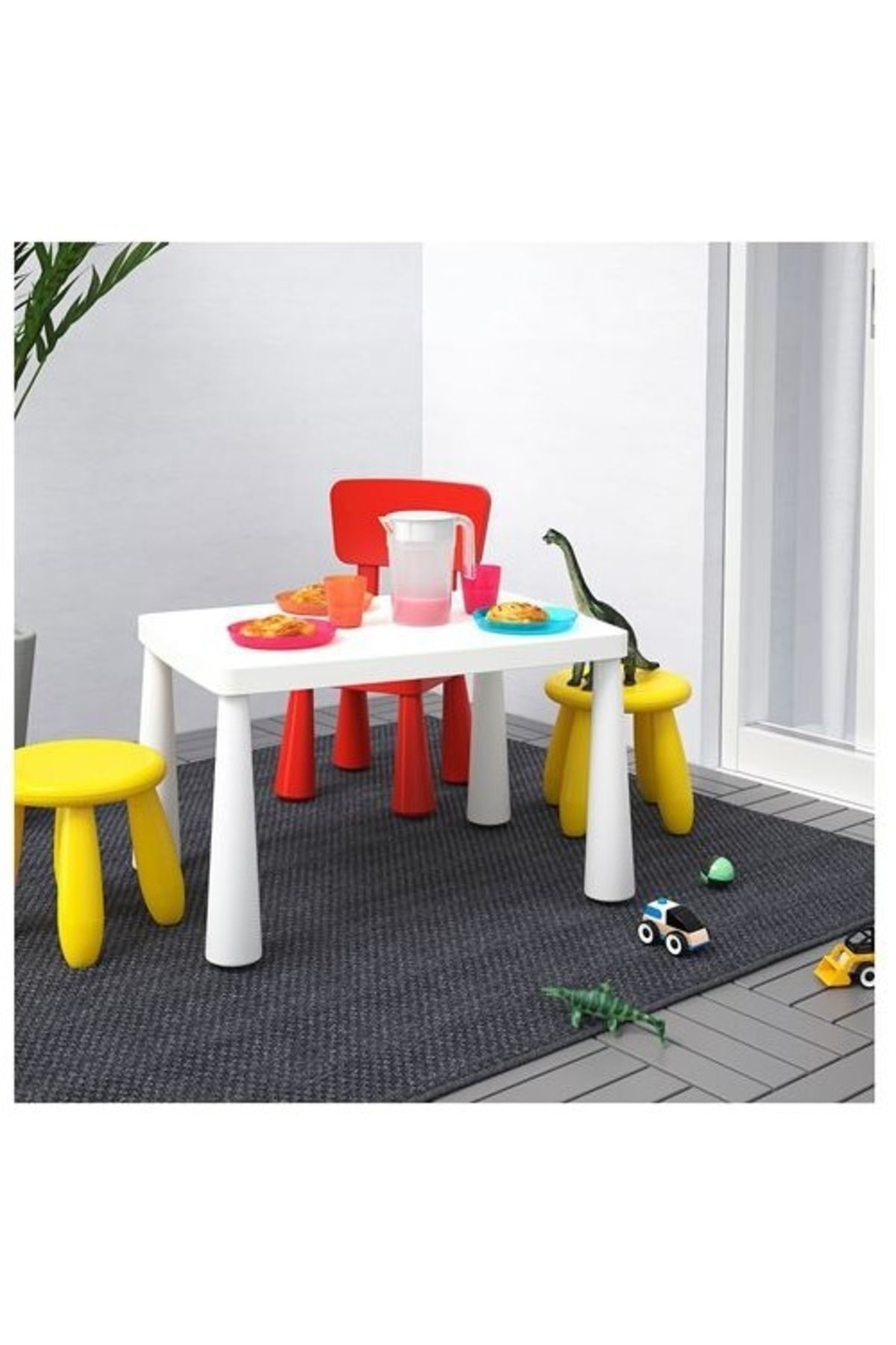 İkea Mammut Çocuk Masası Küçük çocukların oturup oynaması, resim yapması, el işi faaliyetleri yapması ya da bahçede rahat bir piknik yapması için mükemmeldir.Mobilya hafiftir ancak iyi bir dengeye de sahiptir ve çocuğunuz bunları odadan odaya veya bahçeye taşıyabilir.Zararsız plastikten üretilmiştir; aynı materyal biberonlarda, tek kullanımlık bezlerde ve gıda saklama kutularında kullanılır.Yağmur, güneş, kar ve kire karşı dayanıklı olduğundan dış mekan kullanımı için mükemmeldir.Kolay monte edilir; bileşenleri birbirine geçirmeniz yeterlidir.3 – 6 yaş için tavsiye edilirMalzemePolipropilen plastikEbatlarUzunluk: 77 cmGenişlik: 55 cmYükseklik: 48 cm