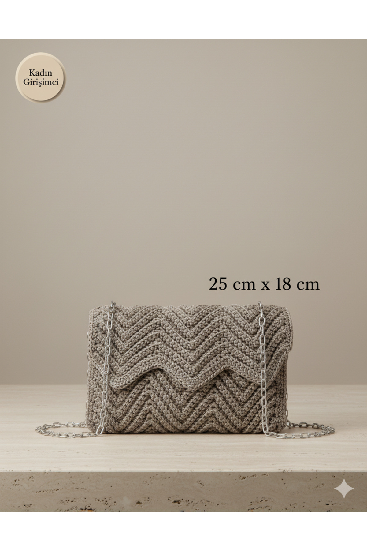 Polyester el yapımı zigzag modelli omuz kol çantası 23 cm Eninde 18 cm yüksekliğinde Şık ve spor tarzına uygun olarak her ortamda severek takabilirsiniz