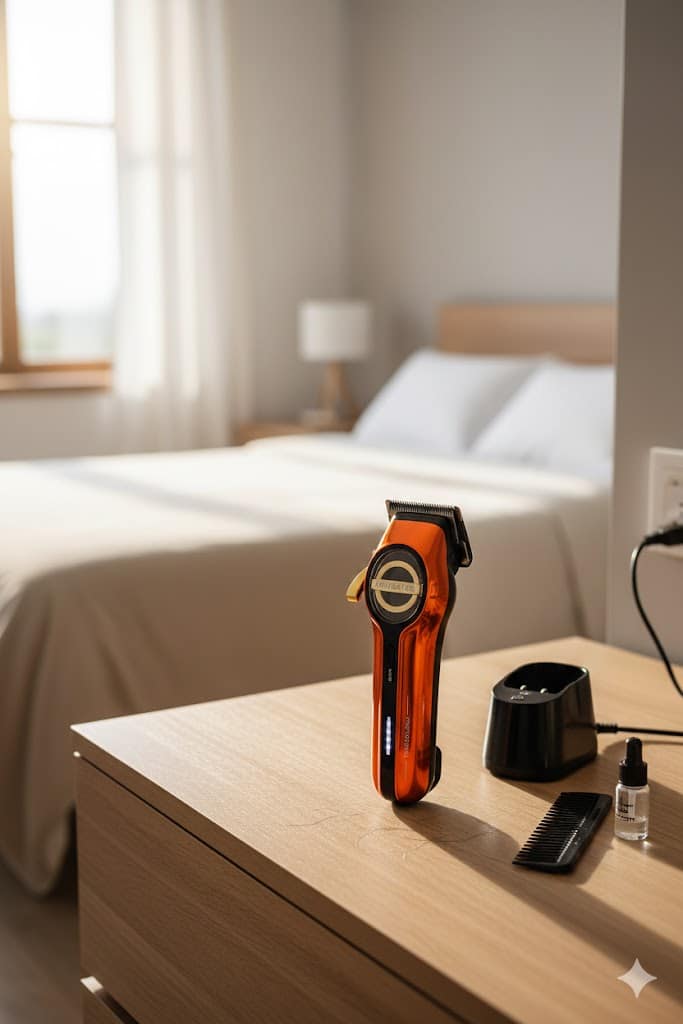 Kesim Ayarı: Sol taraftaki altın renkli mandal (ayar kolu) sayesinde saç kesim uzunluğu manuel olarak ayarlanabilir.