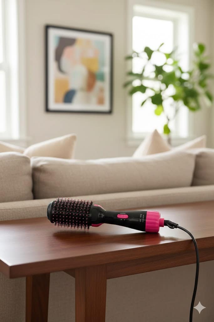 Çok Fonksiyonlu Tasarım: Cihaz hem saç kurutma makinesi hem de hacim veren bir fırça olarak işlev görür, böylece tek adımda kurutma ve şekillendirme yapılmasına olanak tanır.