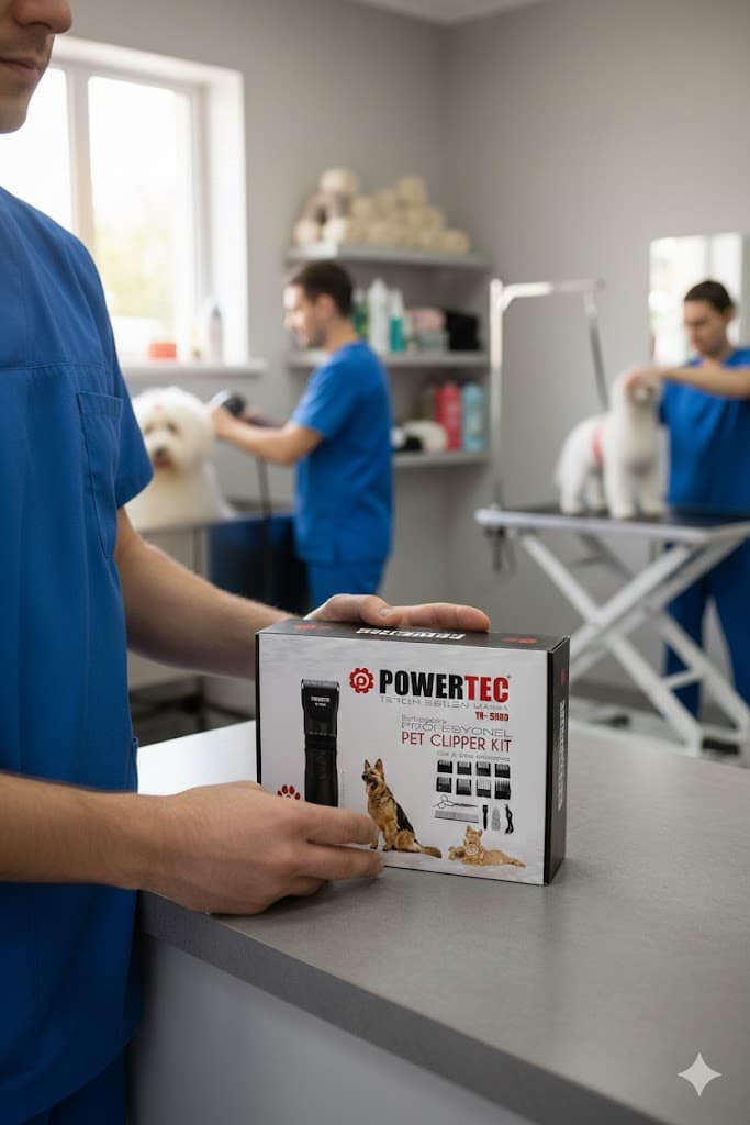 Görselde yer alan Powertec TR-9000 profesyonel evcil hayvan tıraş setinin öne çıkan özellikleri şunlardır: