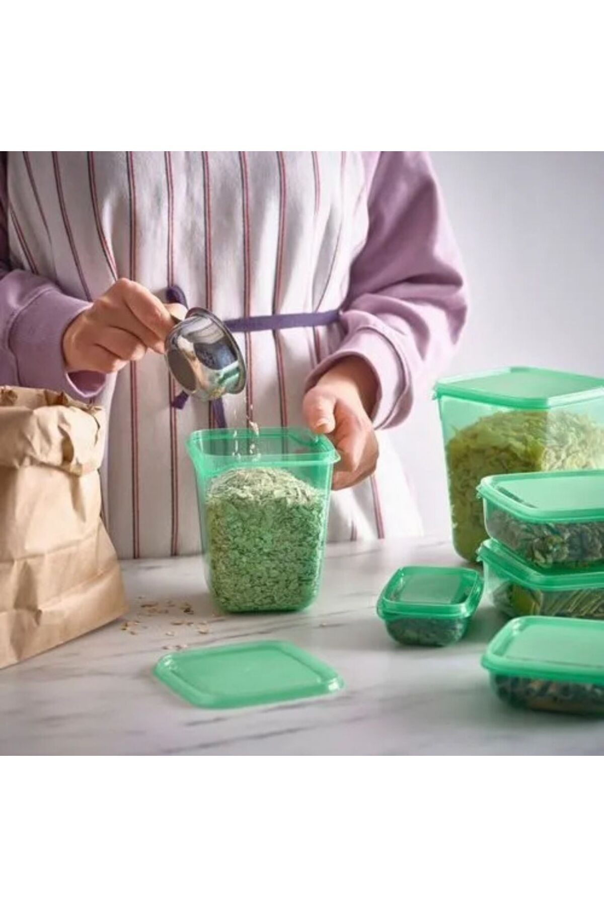 🟢 IKEA PRUTA 17 Parça Saklama Kabı Seti – Düzenli ve Pratik Bir Mutfak İçin İdeal Mutfakta yer kazanmak, gıdalarınızı güvenle saklamak ve düzeni sağlamak artık çok kolay! IKEA kalitesiyle üretilen PRUTA 17’li Saklama Kabı Seti, farklı boyutları sayesinde her türlü ihtiyaca cevap verir.; Buzdolabında, derin dondurucuda, mikrodalgada ve bulaşık makinesinde güvenle kullanılabilir.; 🔸 Ürün Özellikleri: Marka:IKEA Model:PRUTA Parça Sayısı:17 adet (9 farklı boyda) Malzeme:BPA içermeyen, gıdaya uygun şeffaf plastik Kullanım Alanı:Gıda saklama, meal prep, buzdolabı düzeni, çocuk beslenme kabı Uyumluluk:Mikrodalga, buzdolabı, dondurucu ve bulaşık makinesi Kapanış:Hava geçirmez, sıkı kapanan kapaklar 🔸 Set İçeriği: 1 adet 1.6 litre 2 adet 700 ml 2 adet 330 ml 4 adet 200 ml 4 adet 180 ml 4 adet 150 ml Her biri üst üste istiflenebilir tasarımıyla mutfakta yer tasarrufu sağlar.; 🔸 Kullanım Avantajları: ✅ Gıdaları taze tutar, sızıntı yapmaz ✅ Mikrodalgada ısıtılabilir (kapaksız) ✅ Dondurucuda güvenle kullanılabilir ✅ Bulaşık makinesinde kolayca yıkanabilir ✅ Farklı boyutları ile her ihtiyaca uygundur ✅ Şeffaf gövde sayesinde içerik kolayca görülebilir 🎯 Kimler İçin Uygun? Öğrenciler ve çalışanlar için yemek hazırlığı (meal prep) yapanlar Çocukları için beslenme hazırlayan aileler Mutfağında düzen ve sadelik isteyen herkes ✨ IKEA PRUTA ile mutfağınızda hem estetik hem işlevsel bir çözüm yaratın.; ve dayanıklı bu set, günlük kullanımda vazgeçilmeziniz olacak.; IKEA PRUTA PRUTA saklama kabı IKEA saklama kabı IKEA gıda kabı IKEA plastik kap IKEA kap seti PRUTA set PRUTA 17’li set PRUTA gıda saklama kabı IKEA saklama kutusu saklama kabı gıda saklama kabı yemek saklama kabı kapaklı saklama kabı hava geçirmez saklama kabı sızdırmaz kap buzdolabı saklama kabı derin dondurucu kabı mikrodalga uyumlu kap bulaşık makinesine uygun meal prep kabı öğle yemeği kabı kahvaltılık saklama kabı erzak kabı çocuk beslenme kabı mutfak düzenleyici mutfak organizatör 17 parça saklama kabı set saklama kabı kilitli kapaklı kap şeffaf plastik kap BPA içermeyen kap üst üste dizilebilir kap farklı boylarda kap