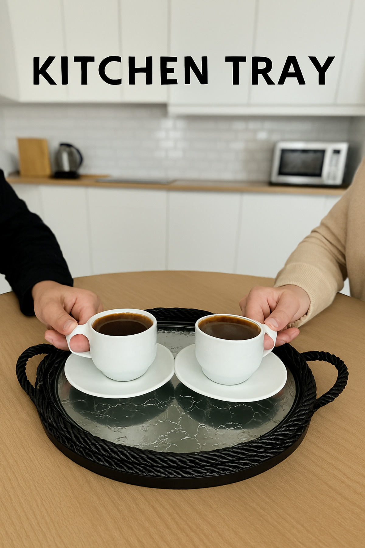 Sert Plastik Yuvarlak Sunum Tepsisi, Dayanıklı ve Şık Servis Çözümü