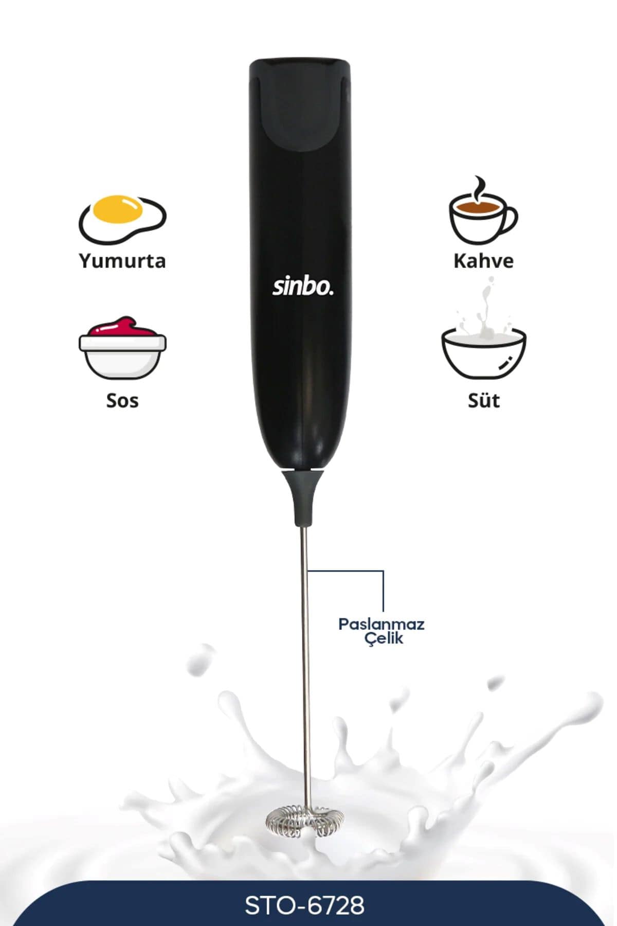 SinboPratik Süt Ve Kahve Köpürtücü Siyah Sto-6728