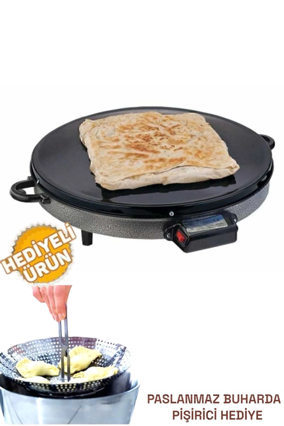 Termostatlı Elektrikli Katmer Gözleme Sacı Büyük Boy Buharda Sebze Haşlama Hediyeli