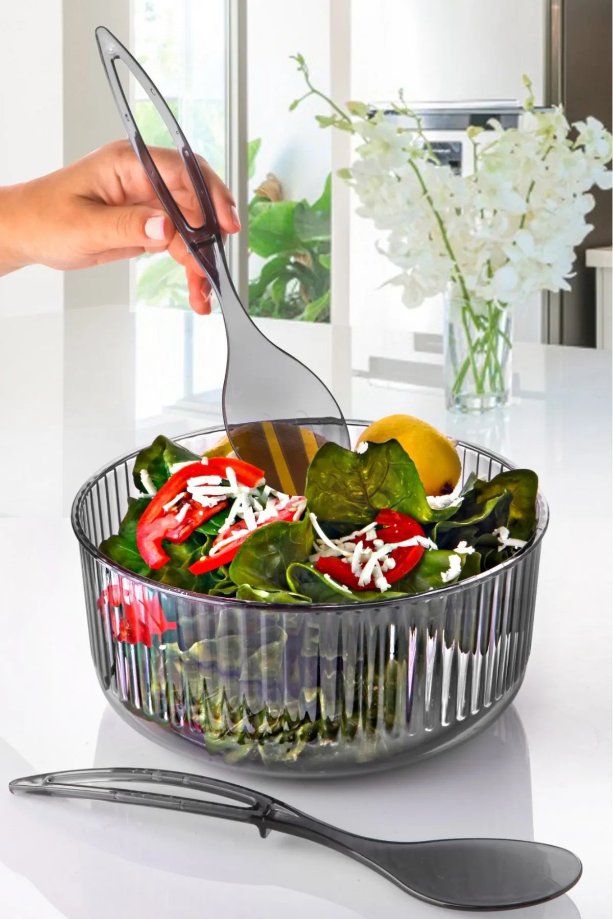 VİATOM Akrilik Avantajlı Büyük Boy Salata Kase Seti – Servis Çatalı & Kaşığı KAHVERENGİ