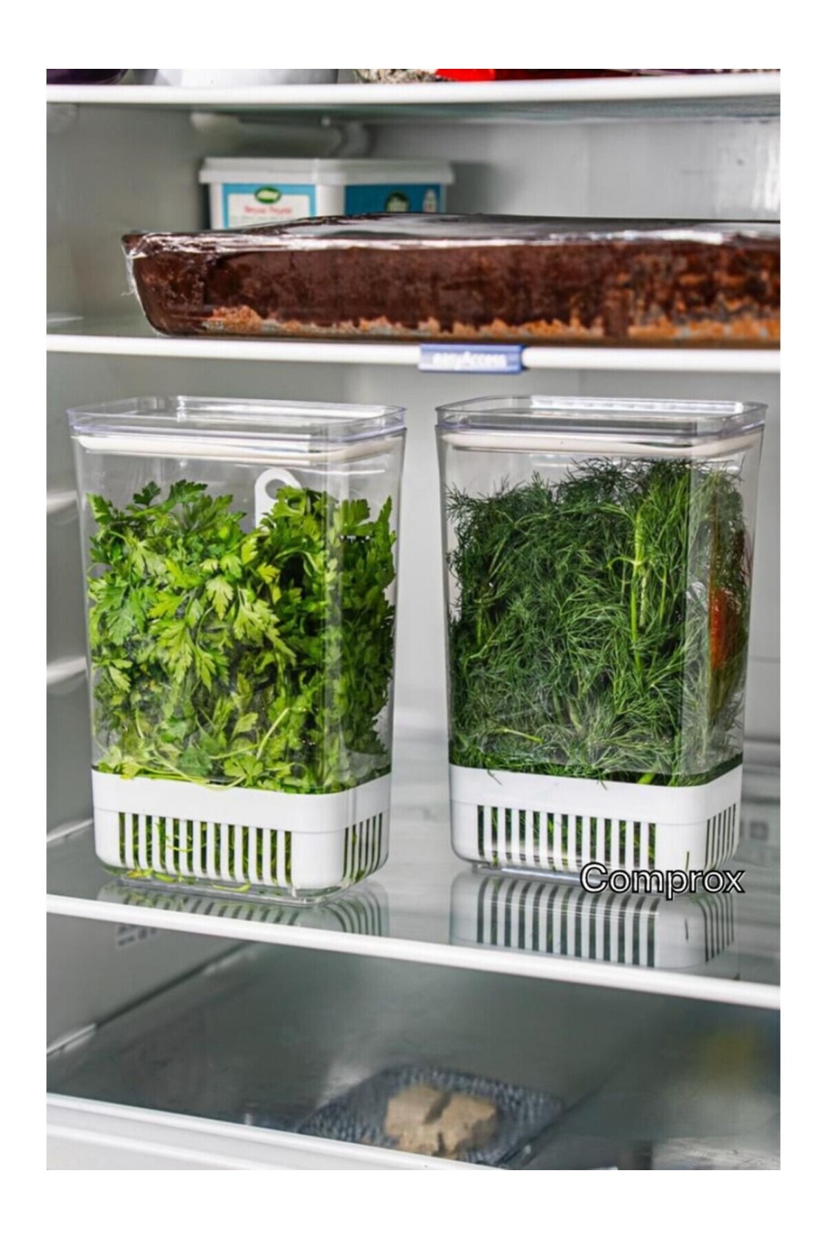– İki adet 2900ML kapasiteli saklama kabı ile taze yeşilliklerinizi uzun süre taze tutun.; – Toz alma özelliği sayesinde maydanoz, dereotu, tere ve roka gibi tozlu sebzeleri kolayca saklayın.; – Dayanıklı plastik materyali ile uzun ömürlü kullanım sunar.; – Şık beyaz rengiyle mutfak dekorasyonunuza modern bir dokunuş ekleyin.