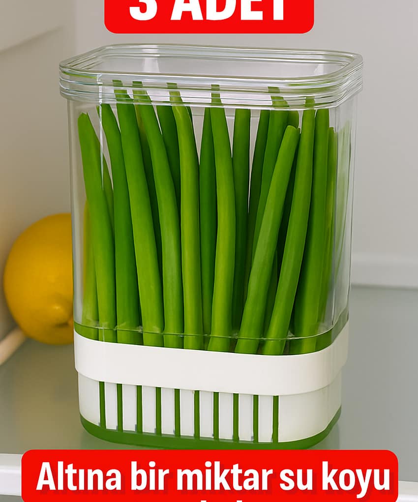 – İki adet olarak gönderili 2900 mL kapasiteli yeşillik saklama kabı ile maydanoz, dereotu, tere ve roka gibi sebzelerinizi kolayca saklayın.; – Dayanıklı plastik materyalden üretilmiş olup, uzun süreli kullanım için idealdir.; – Kolay temizlenebilir yapısı sayesinde hijyenik bir saklama imkanı sunar.; – Yeşilliklerinizin tazeliğini koruyarak, mutfakta düzenli bir görünüm sağlar.;